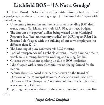 In today’s edition of the Hudson Litchfield News; there was this “Letter to the Editor“, written by Joseph Cabral.