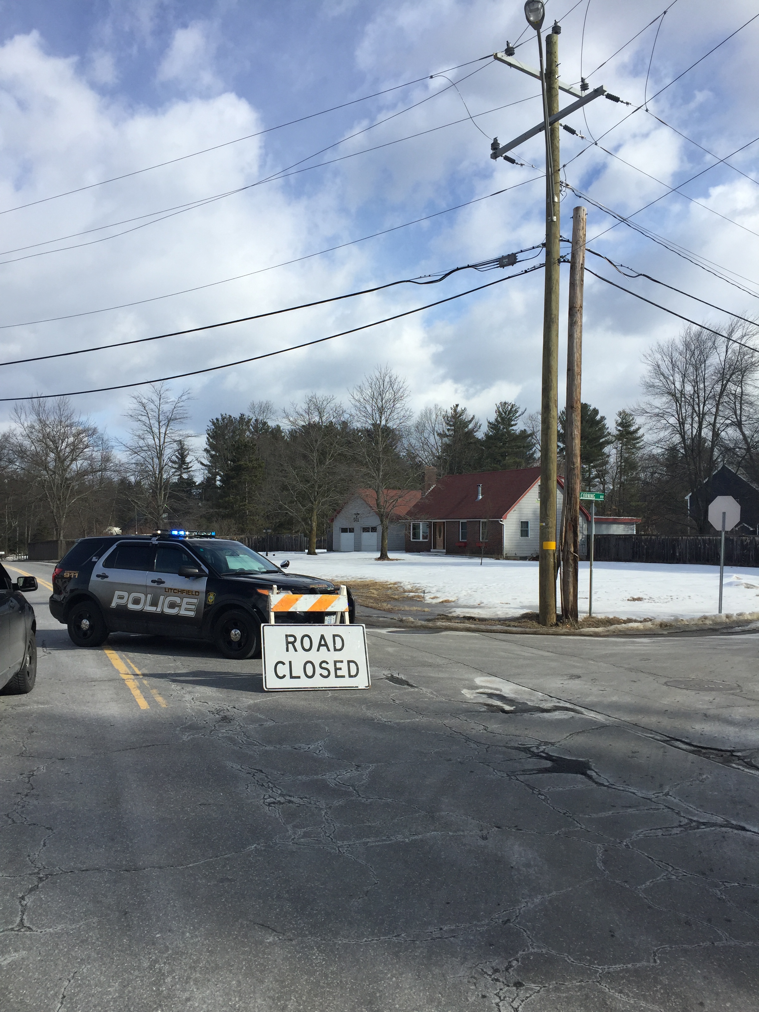 Traffic on CBH is closed from Corning Road to the Manchester line. Broken pole with wires across the roadway; crews are working to resolve the issue.